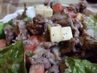 | 4. | 食べやすい大きさに切ったレタス、きゅうり、トマトなどと一緒に盛り合わせ、全体にドレッシングを軽くかける。 |