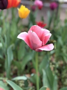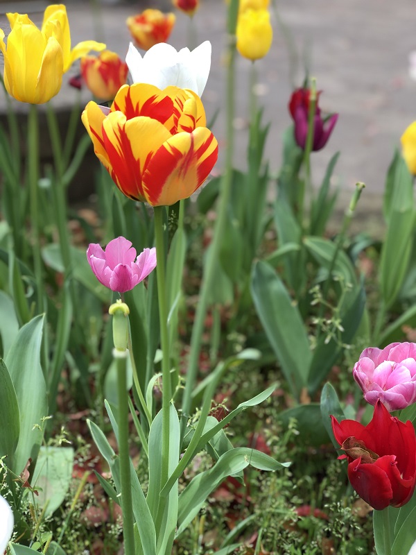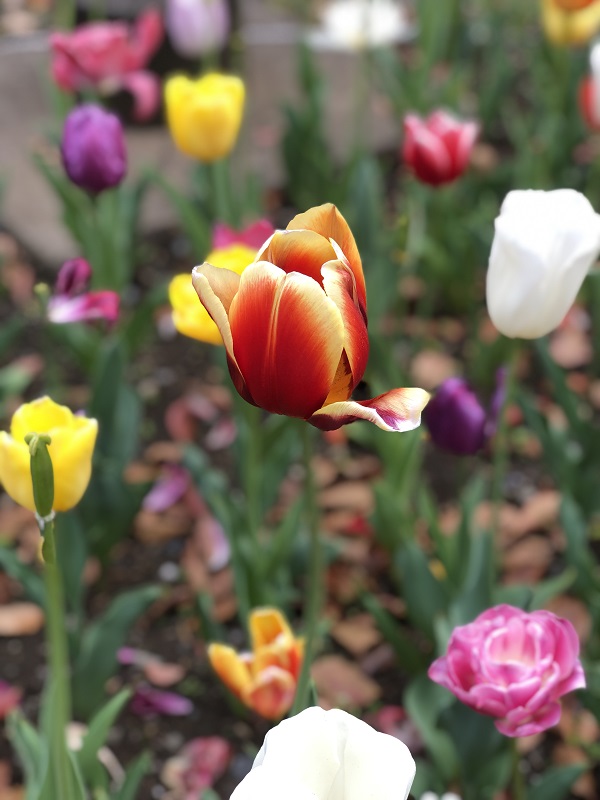 今回は横浜公園のチューリップを描きます。スマホのカメラ機能「ポートレート」を使いバックをぼかしたチューリップを描きましょう。