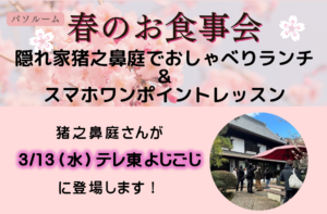 HOME > 2024年 > 3月 月: 2024年3月 桜はまだ一部咲きでした~戸塚カメラ講座撮影会 パソルーム春のお食事会が開催されました♪ 折り紙講座のご報告 フラワーセンターで撮影会でした! 「スマートウォッチで健康管理」3月のそこが知りたい! 3/29(金)春のお食事会ー猪之鼻庭さんがテレ東で紹介されます! 4月スケッチピクニック(お絵かきお散歩)ご参加のお知らせ 4月水曜スマホ講座~ピンポイントレッスン~ 4月開催ArtRage初心者講座(全3回) 春の訪れを撮影してきました~カメラ講座(戸塚) 1 / 212»