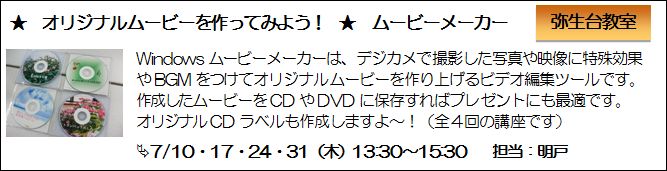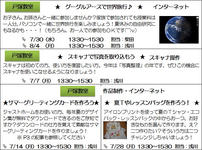 7月開講「月いち講座」のお知らせ 弥生台教室 全6回 受講料:3,150円/月