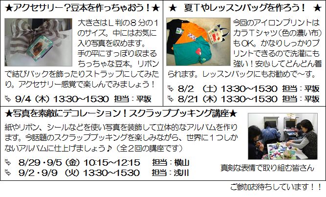※弥生台教室は9月下旬に行います。日程は次号にてお知らせします。