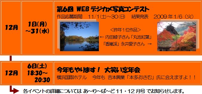 これから年末にかけてさまざまなイベントが皆さんをお待ちしています。