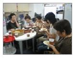 クラスメイトはとても仲良しです。お茶タイムにはおしゃべりに花が咲きます。