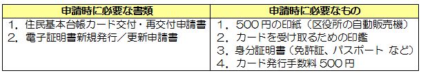 持ちもの:住基カード・電子証明書(電子証明書は住基カードに格納されます)