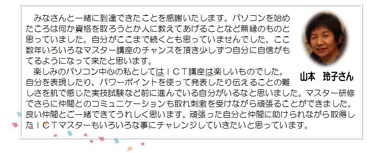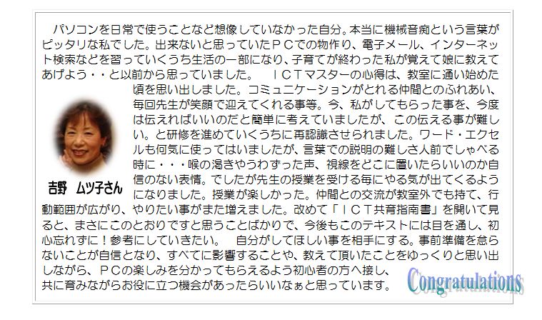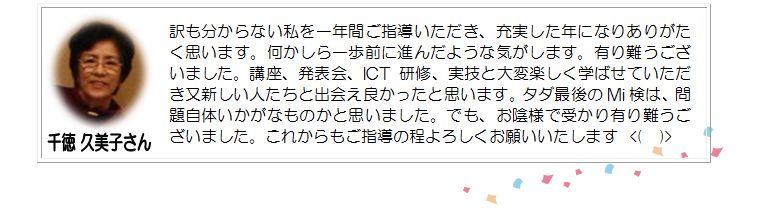 前号でご紹介しました ”当教室初”の ICTマスター さんからのコメントをお届けします!