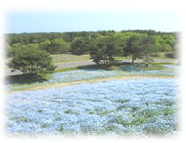 ブルーのかわいらしいお花、ネモフィラが丘一面に広がります。