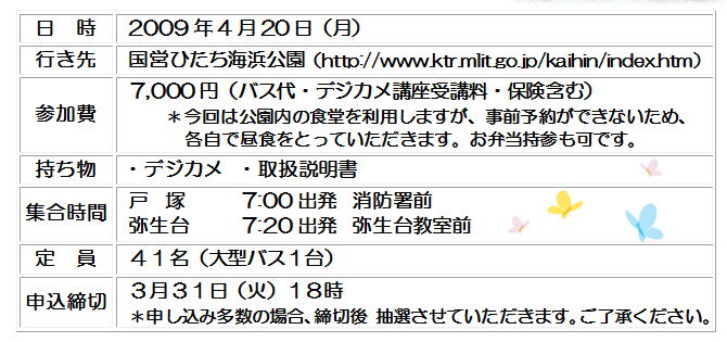 春のデジカメバスピクニックのご案内で〜す(*^_^*)