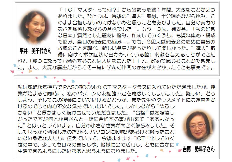 前号に続きまして ”当教室初”の ICTマスター さんからのコメントをお届けします!