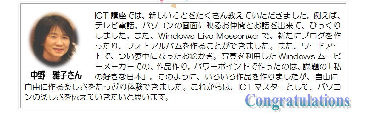 初心者の方や苦手な方に、やさしく、わかりやすく伝えられるICTマスターさんの活躍に大いに期待しています!