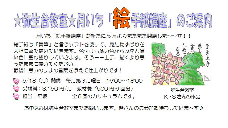 弥生台教室 : 6/26(金) 16:00 〜 18:00