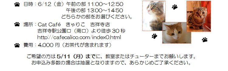 お申込みは salon@pasoroom.jp までメール、または教室・チューターまでお願いします。
