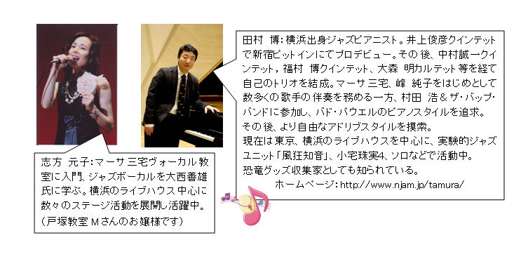 ✓ ゲスト : 志方 元子(歌)・田村 博(ジャズピアニスト)