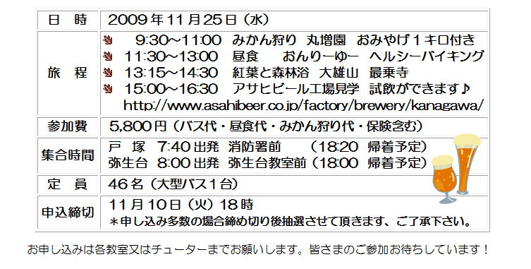 ✓ 日程 : 11/12(木)16:00~18:00 弥生台教室 (残席わずか!)