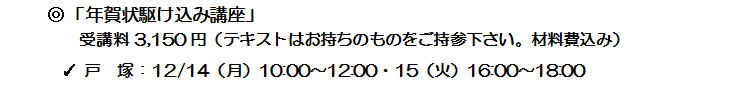 戸塚教室では、「楽々はがき」を使用した年賀状駆け込み講座を行います。