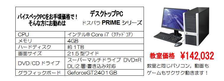 富士通のパソコン、教室で使用しているドスパラパソコンの販売を始めました。以下はその一例です。