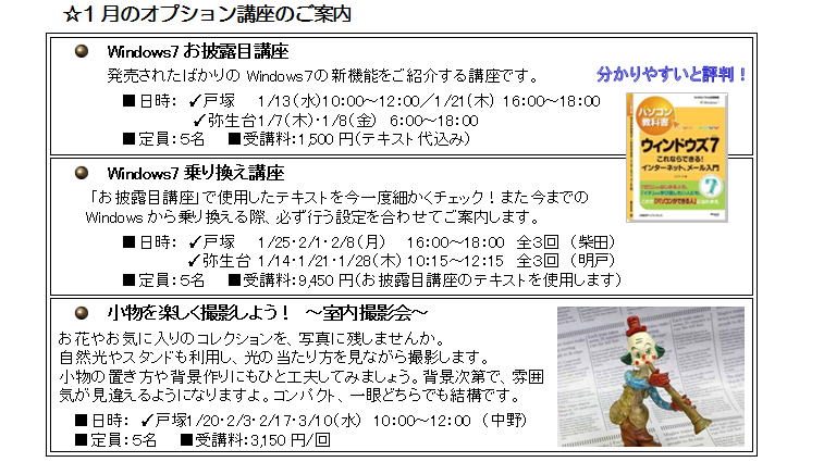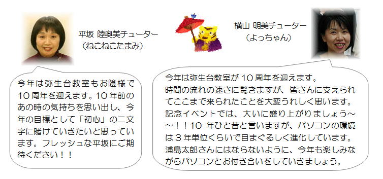 2010年のパソルームは、弥生台教室が10周年を迎えます。