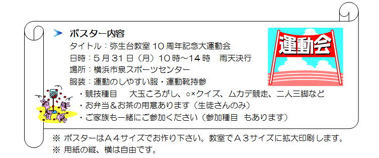 運動だけじゃ、パソコン教室のイベントにはなりませんよね。(^^ゞ そこで、パソコンを使って、運動会のポスターを作りましょう!