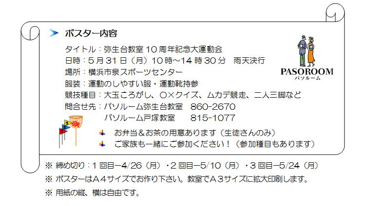 弥生台教室10周年記念運動会に向けて、準備が進んでいます。