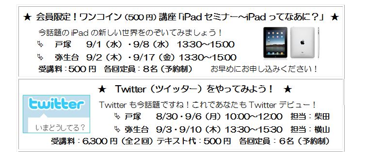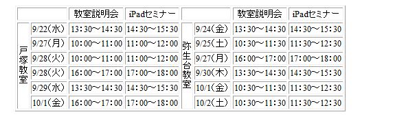 教室説明会&iPadセミナー(ワンコイン講座) のご案内