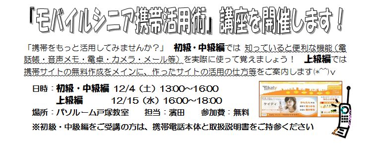 戸塚教室 :12/20(月)18:00~ 会費:4,500円 トツカーナモール4F 海ふね(かぶね)