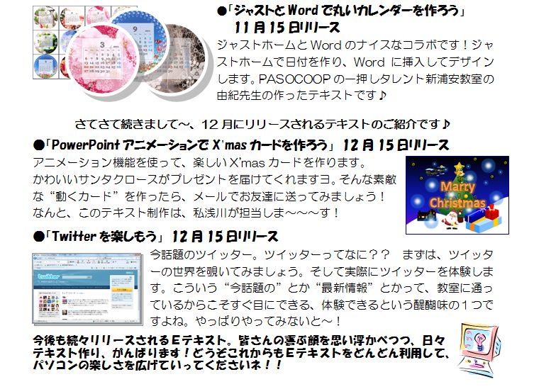 います。お受けする質問も「うん、使ってるな。」といった内容です。来年はパワーポイントに挑戦ですね。