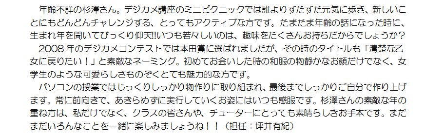 多機能な分だけ知識も必要になりますが、パソコン教室に通っているんだもの。ぜんぜん心配なし!