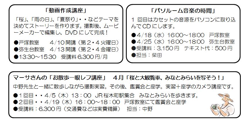 5月10日(木) 戸塚消防署前13:20 弥生台教室前13:40 |