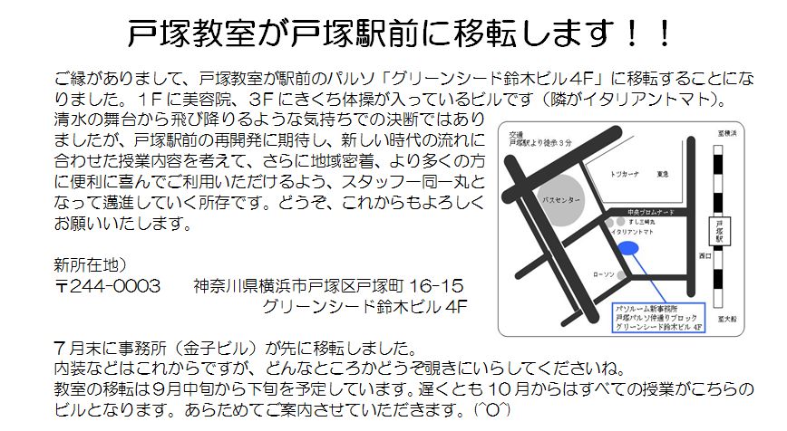 戸塚区戸塚町3959 吉田屋ビル1F TEL:045-860-2670 totsuka@pasoroom.jp