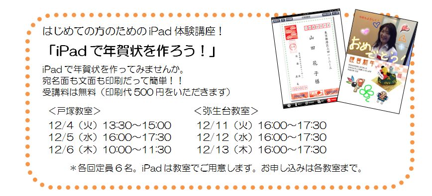戸塚教室での開催となります。お気軽にご参加くださいね。