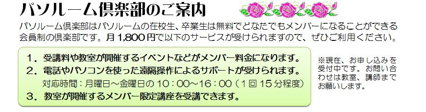 していきたいと思っています。 パソルーム倶楽部ともどもよろしくお願いします。