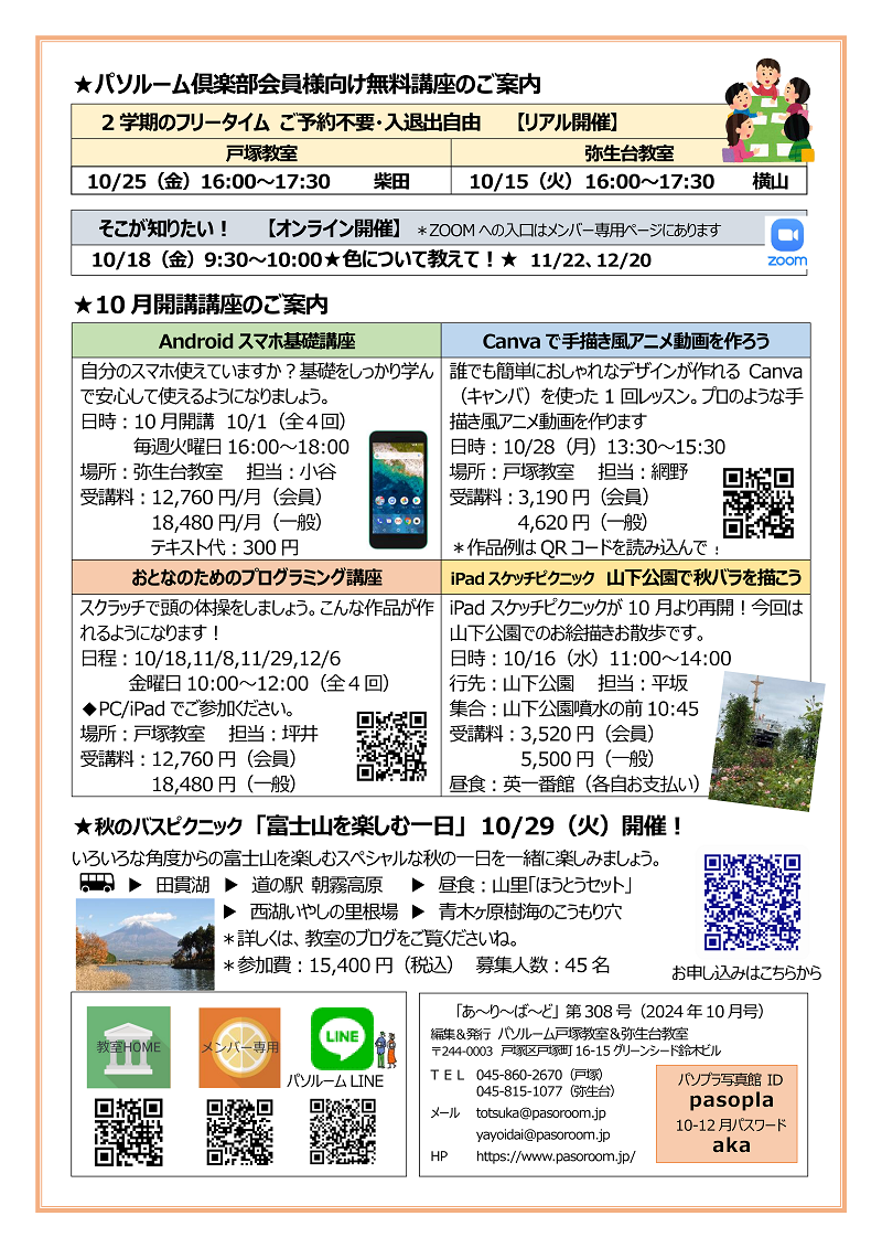 *秋のバスピクニック 「富士山を楽しむ一日」 9/3-から受付スタート!