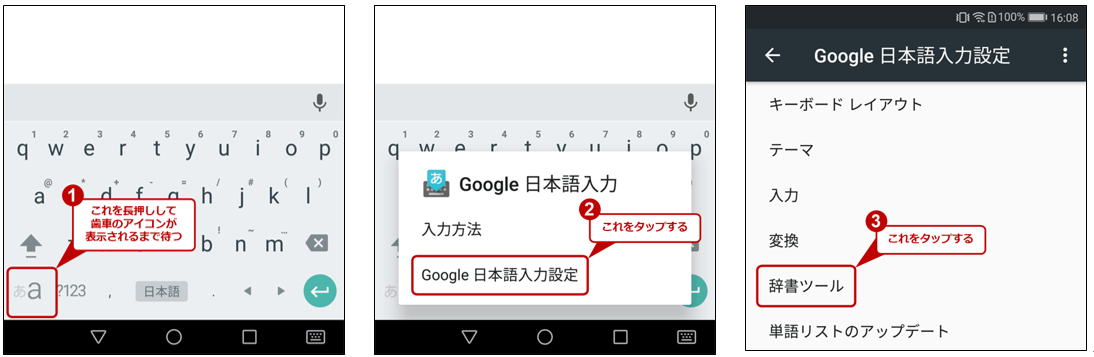 ②【ユーザ辞書】をタップします。