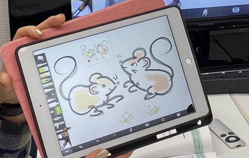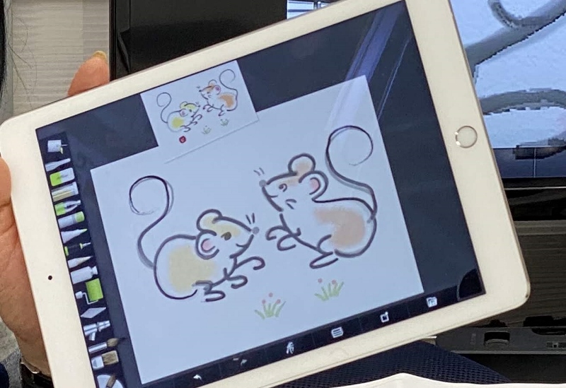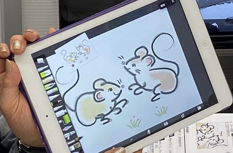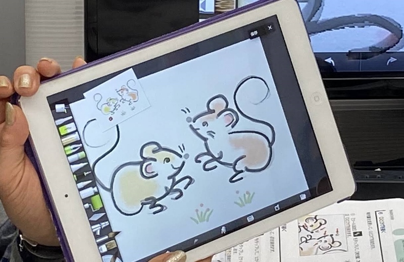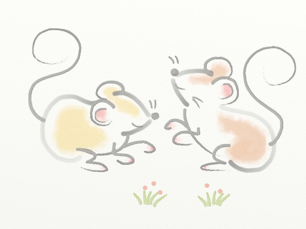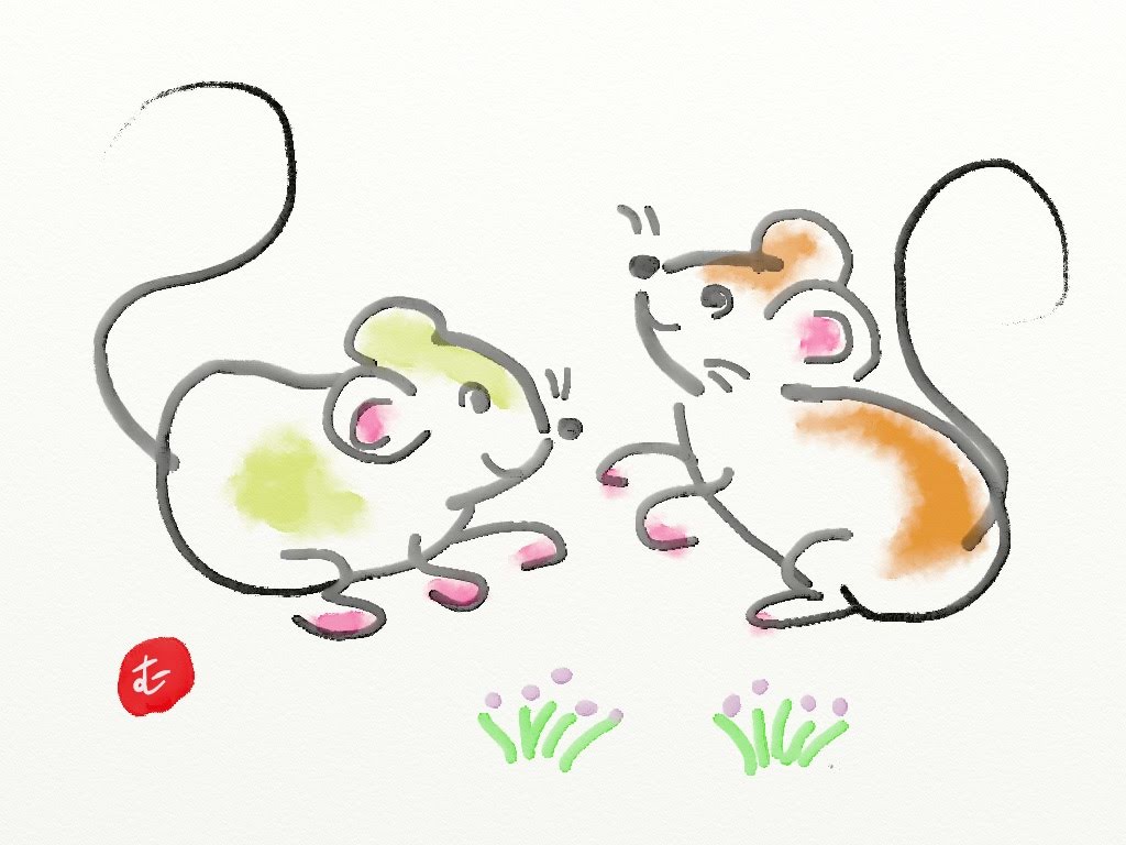 来年の干支は子(ネズミ)ですね。こんなかわいいネズミの親子を皆さんに描いていただきました。