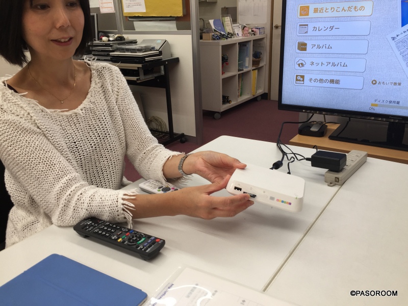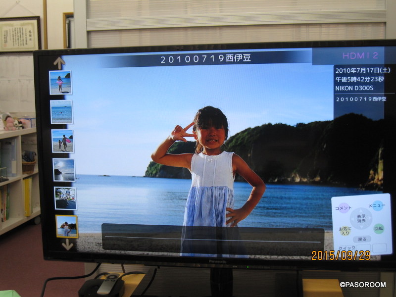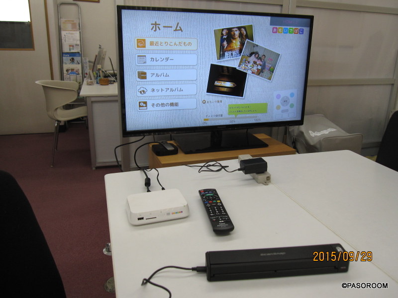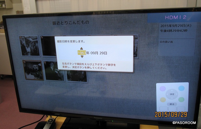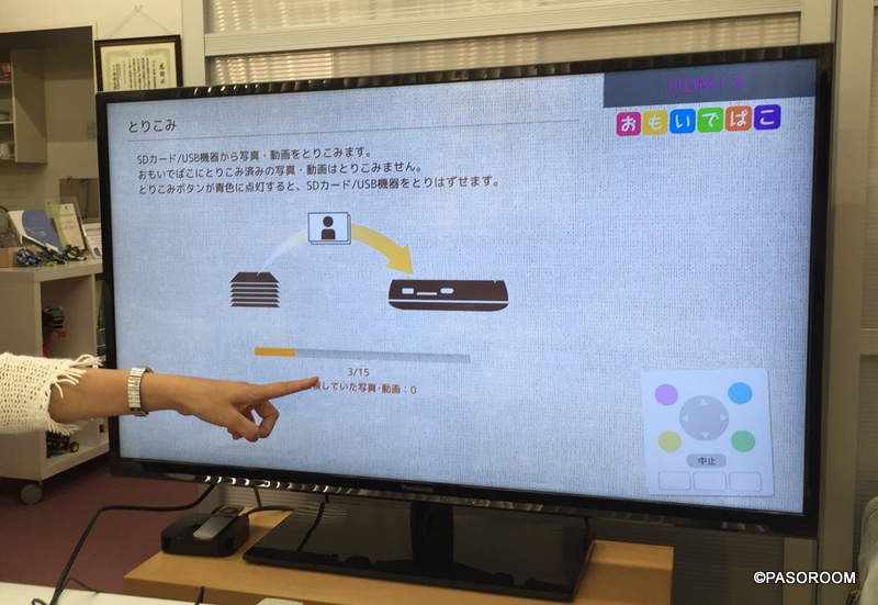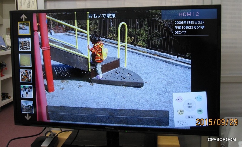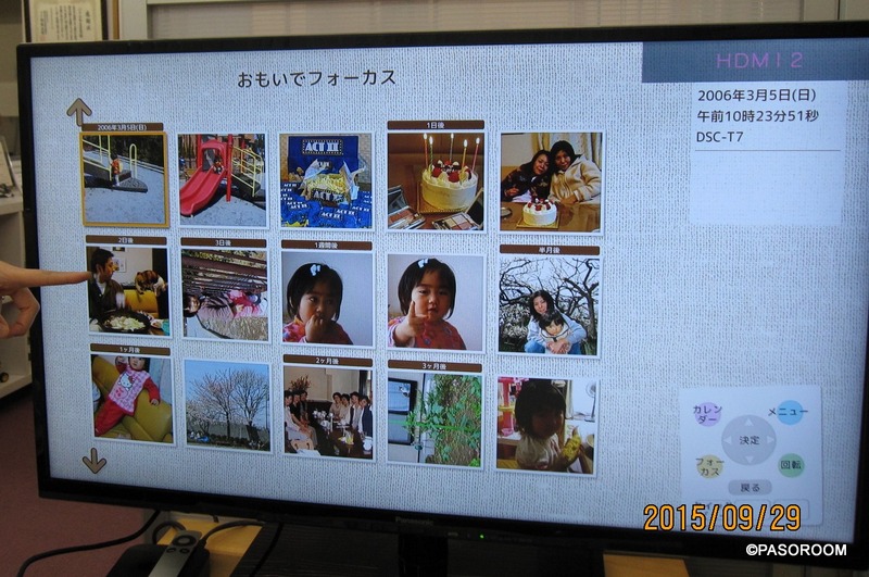 おもいでばこにに取り込んだ写真は、こうしてテレビの大画面でみんなで楽しむことができます