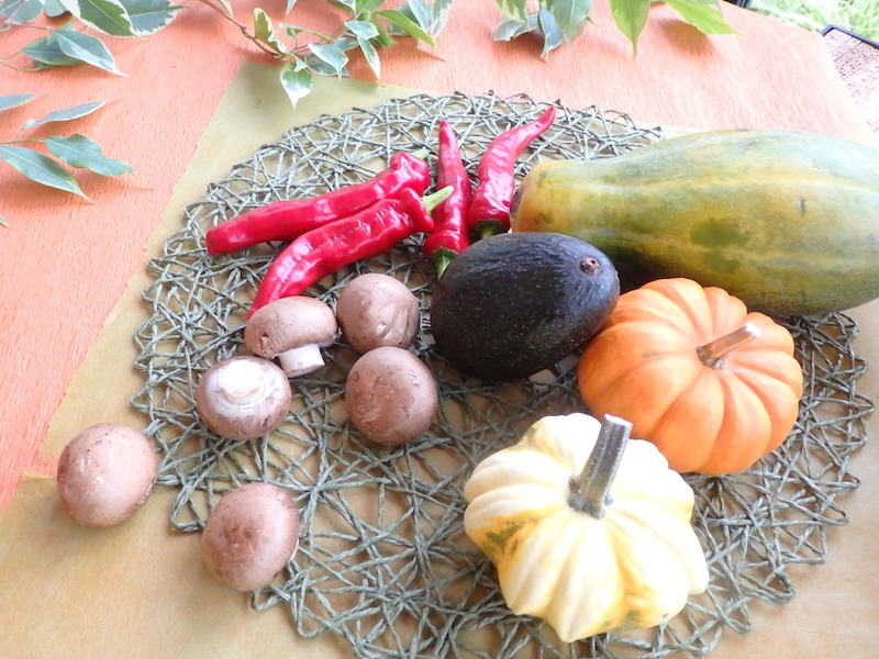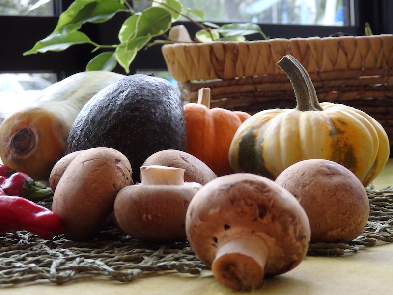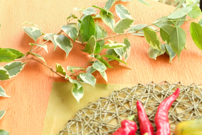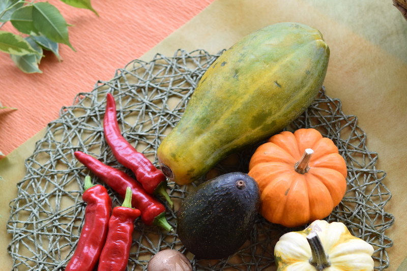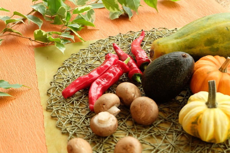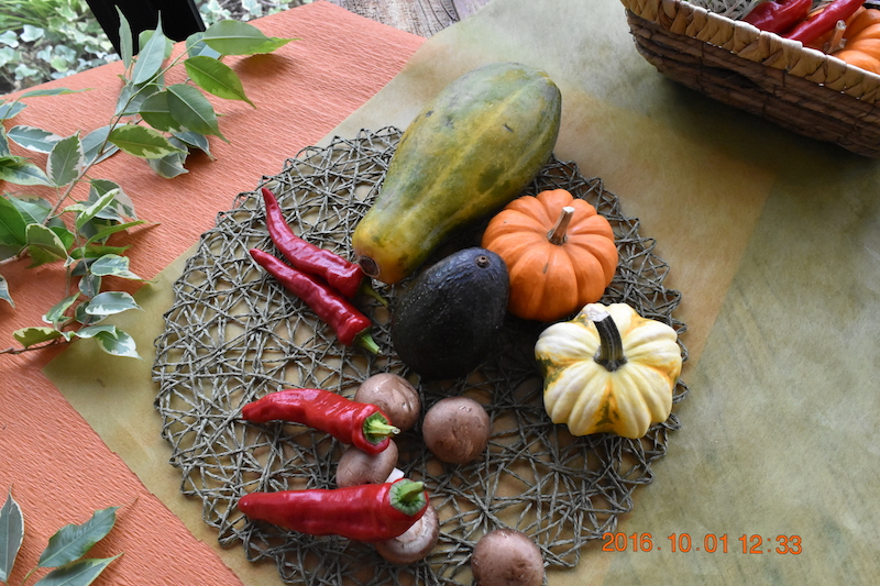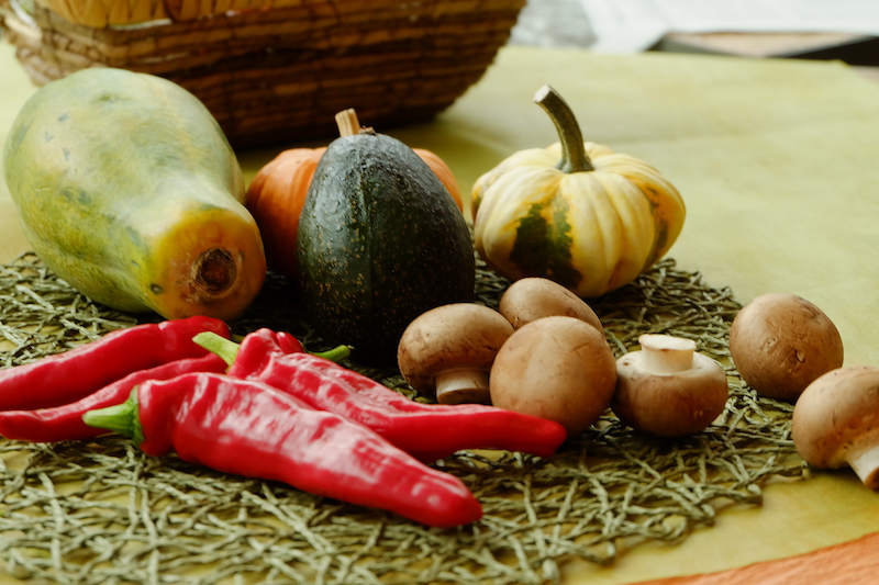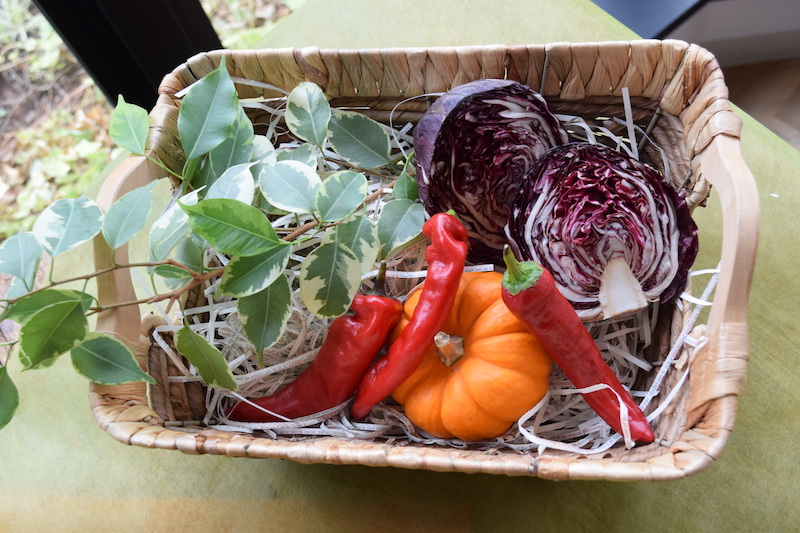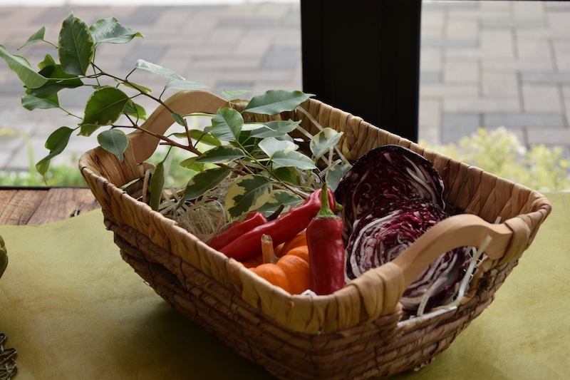 秋の実りをイメージした野菜やニット小物・パンなど、身近にあるものをいつもより少しお洒落に演出し