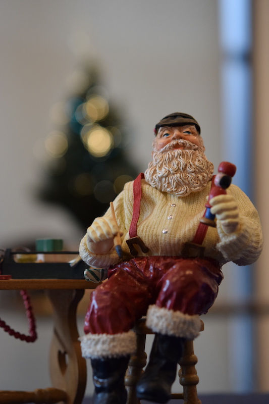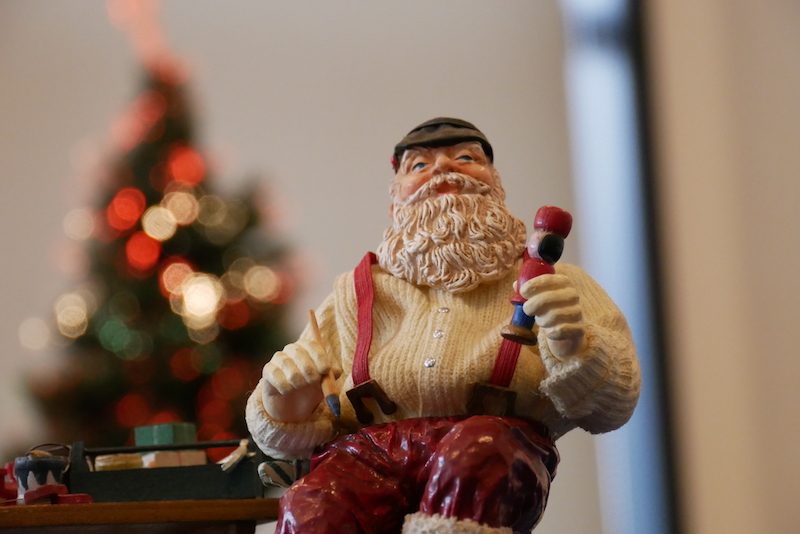 また、クリスマスコーナーでは、遠目においたツリーの電飾を使って、