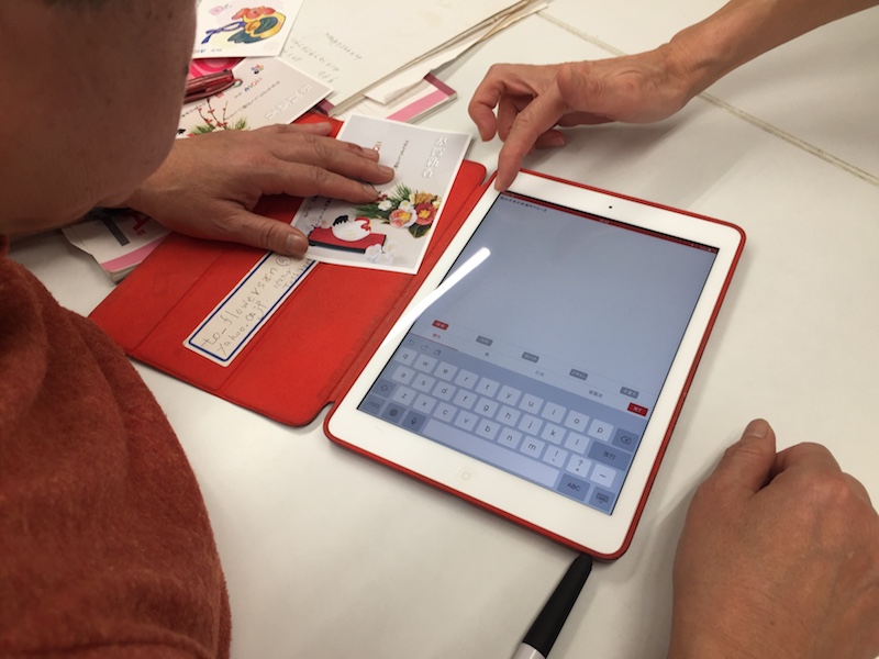 ・午後の授業から引き続きでご参加のFさんは、iPadで年賀状の作成。