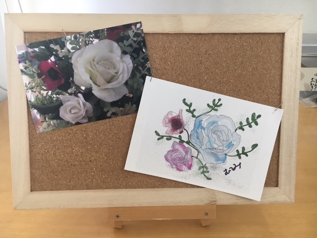 描きあがった水彩画と撮った写真を並べてピンナップします。