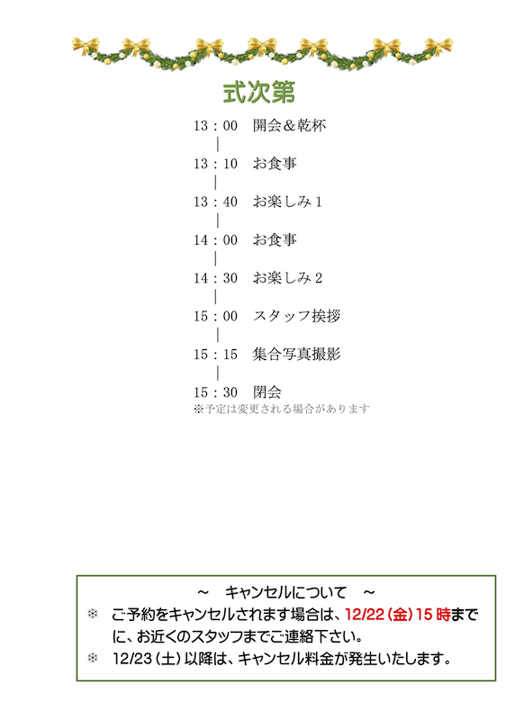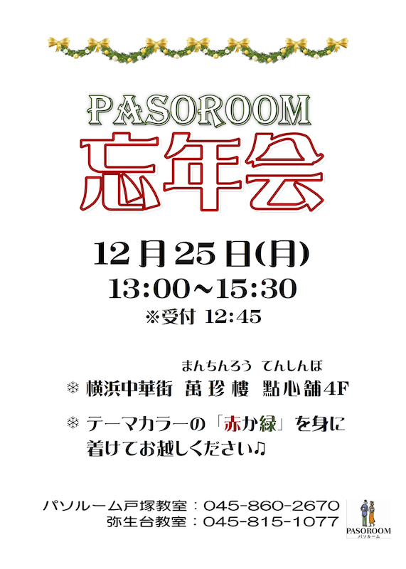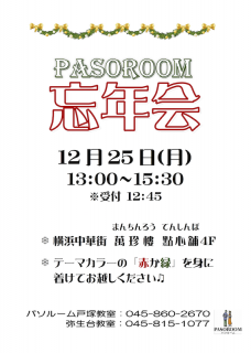 さて、12月25日(月)の戸塚・弥生台教室合同忘年会に、