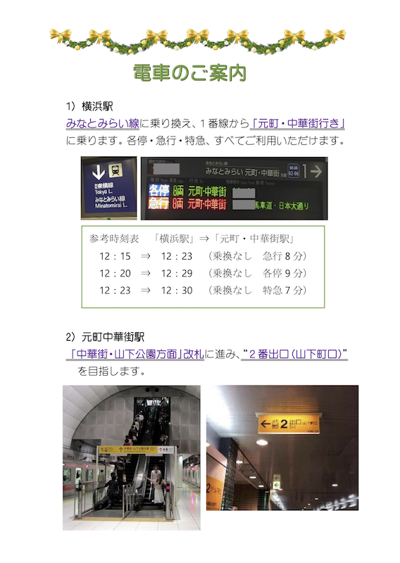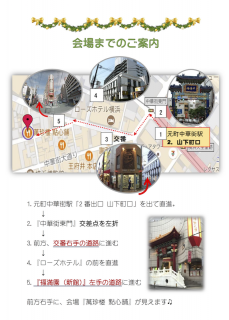 会場となります「万珍楼 点心舗」への電車の時刻・地図なども記載しております。