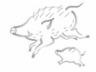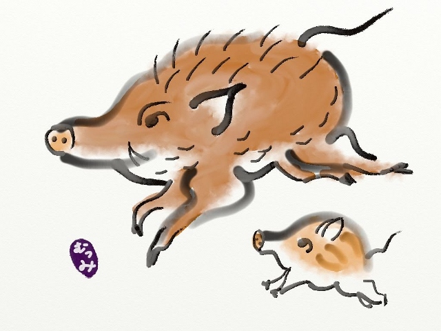 微笑ましい親子のいのししが描けました。