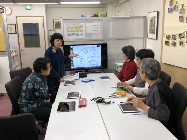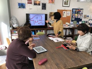 弥生台では4名、戸塚では3名のご参加でテレビの画面を見ながら描いていただきました。