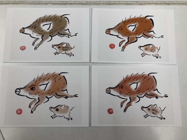 11月19日は弥生台教室でそして11月21日は戸塚教室で来年の干支「いのししの親子を描く」が開催されました。