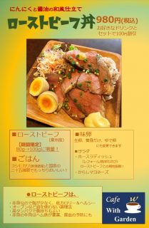 弥生台教室奥にあるCafe With Gardenのローストビーフ丼♪