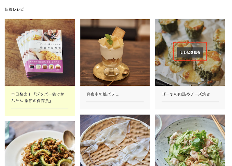 1. トップページの料理一覧の中から、気になるレシピの「レシピを見る」をクリックします。