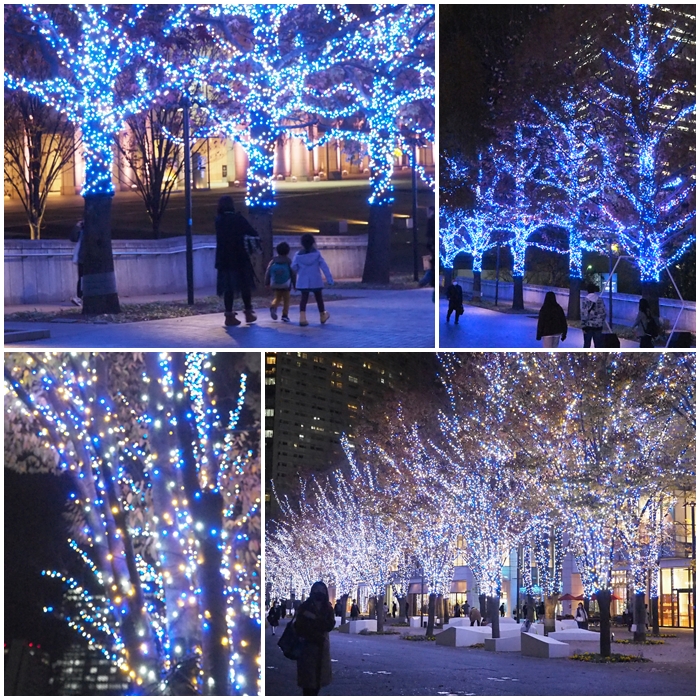 クリスマスツリーに音と光の競演が行われたり、街路樹にはブルーの灯りが点灯されたり、とても輝いていました。