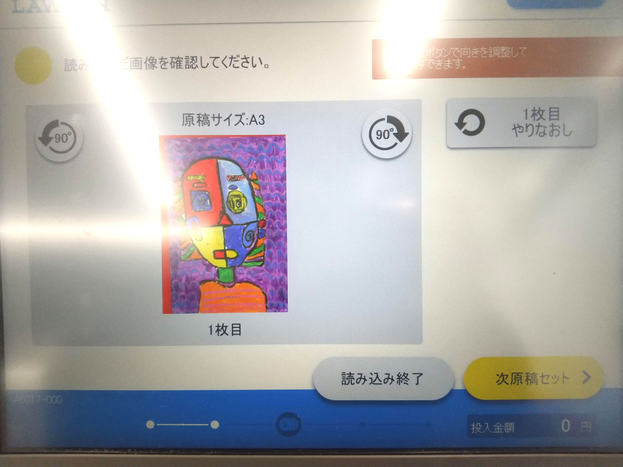 子どもの絵を2枚、マルチコピー機でスキャンしました。