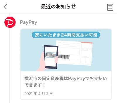 なんと、横浜市の場合、固定資産税などもPayPayで納付可能です。