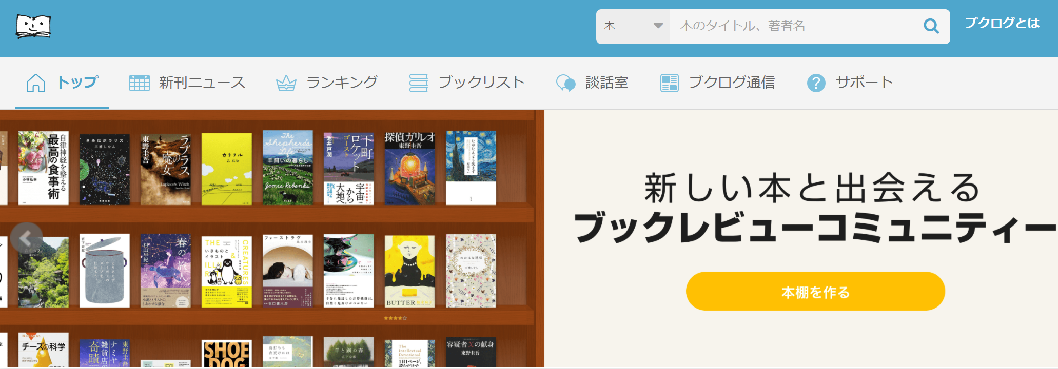 ブクログ(booklog)は、新しい本に出会えるブックレビューサイトです。本の感想や評価をチェックしたり、web上に本棚を作成し、感想やレビューを書いて蔵書を管理したりできます。