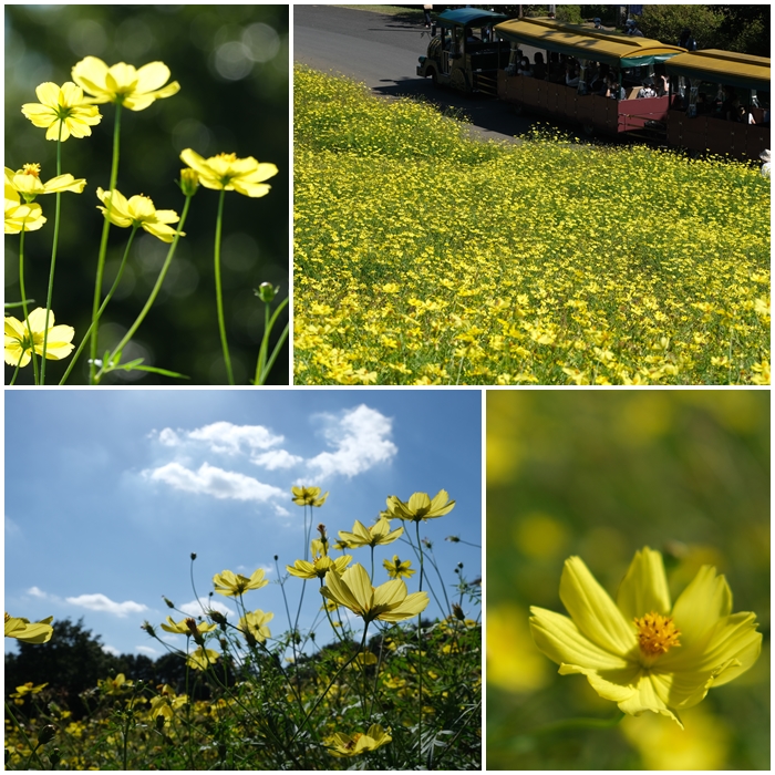 キバナコスモスの咲いている所まで園内のパークトレインに乗り、お昼を済ませ撮影を開始。
